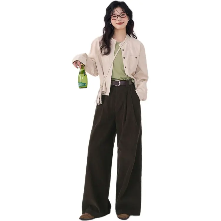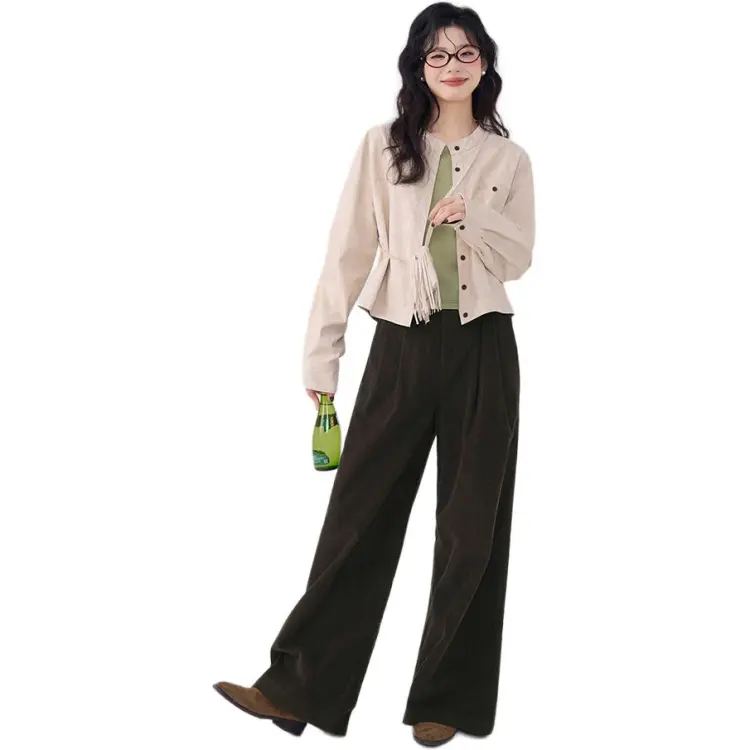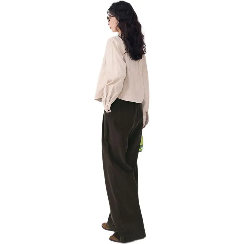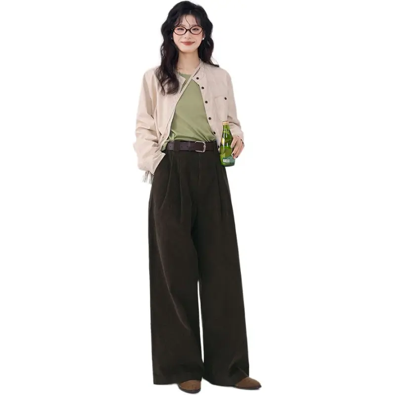 HTMEME 다크 커피 색상 여성 캐주얼 팬츠 - POIZON
