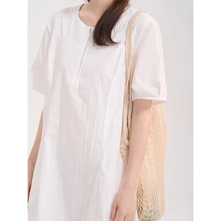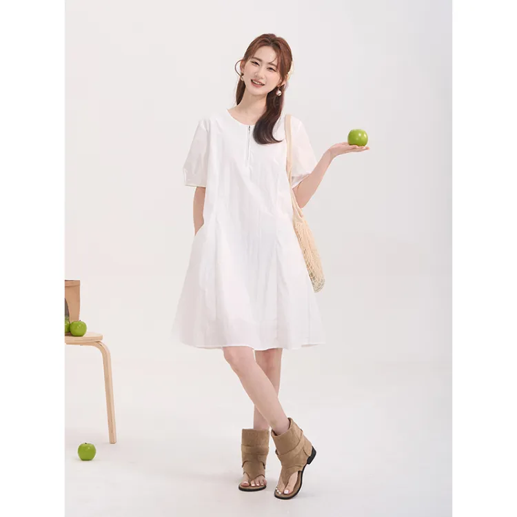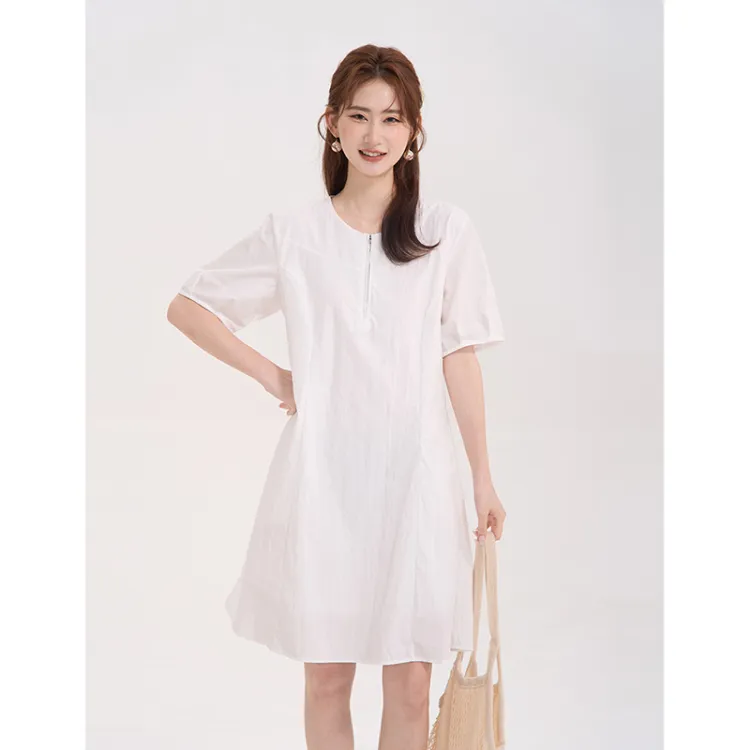 HTMEME 화이트 여성 반팔 원피스 - POIZON