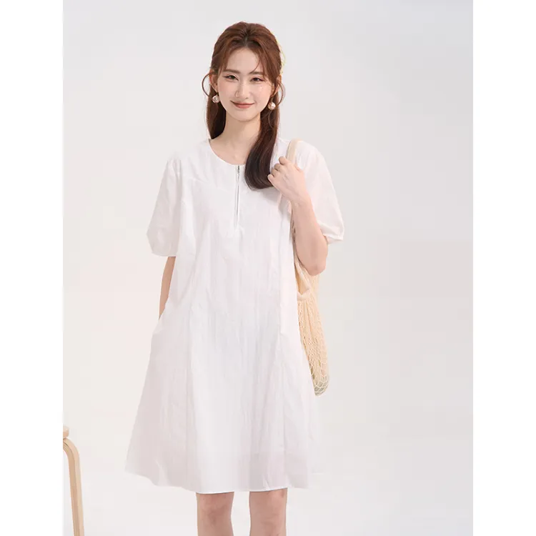HTMEME 화이트 여성 반팔 원피스