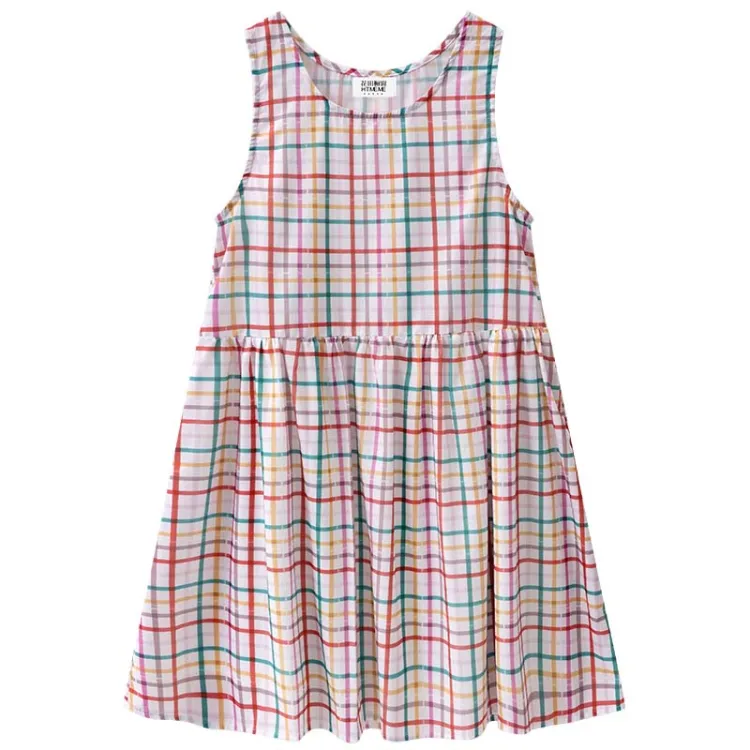 HTMEME 멀티컬러 체크 여성 민소매 원피스