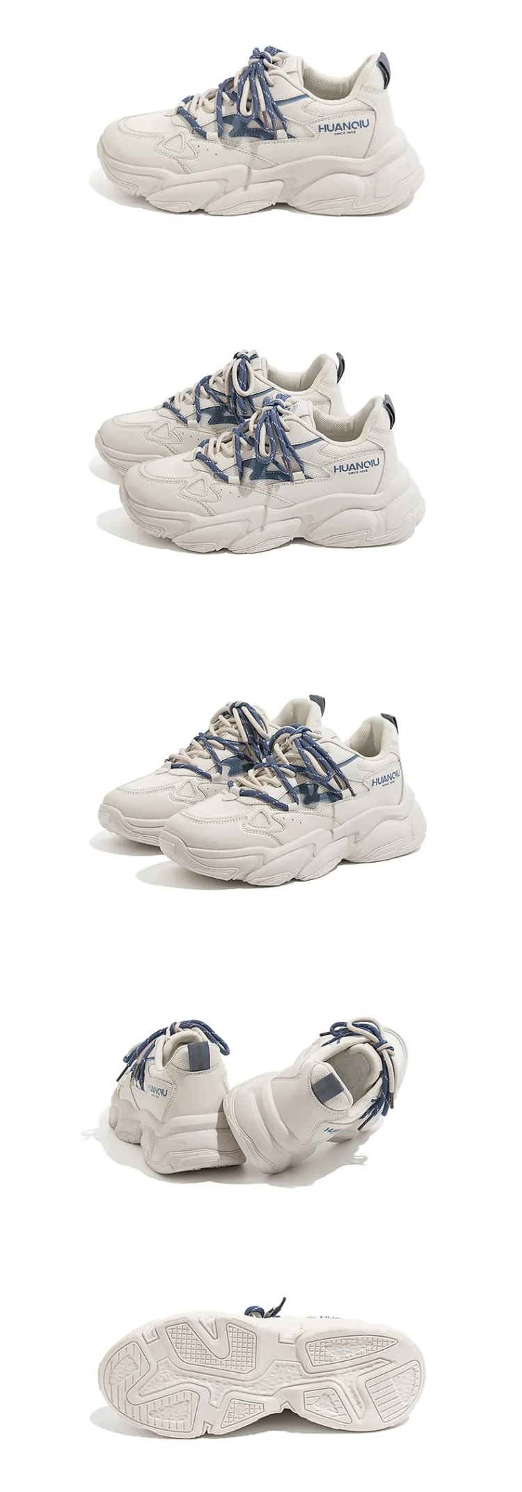 HUANQIU 청키 스니커즈 로우탑 베이지 블루 남성 - POIZON