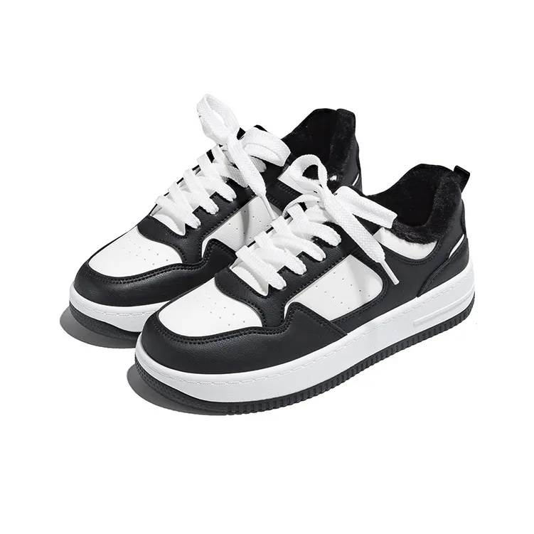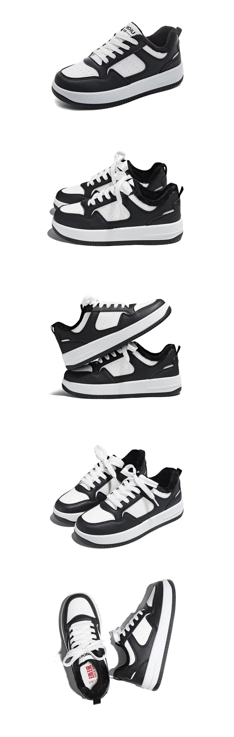 HUANQIU 로우탑 스케이트보드 신발 여성 화이트 블랙