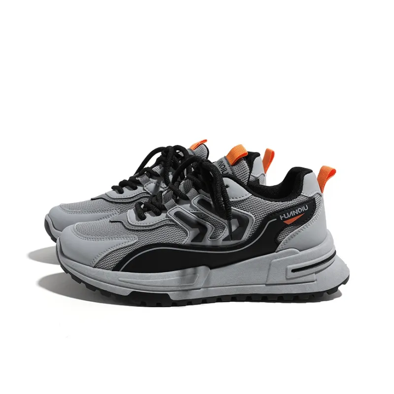 HUANQIU 미끄럼 방지+내마모성 로우탑 캐주얼화 남성 블랙 그레이