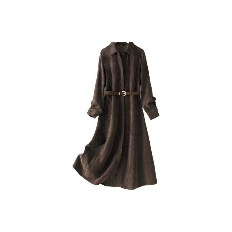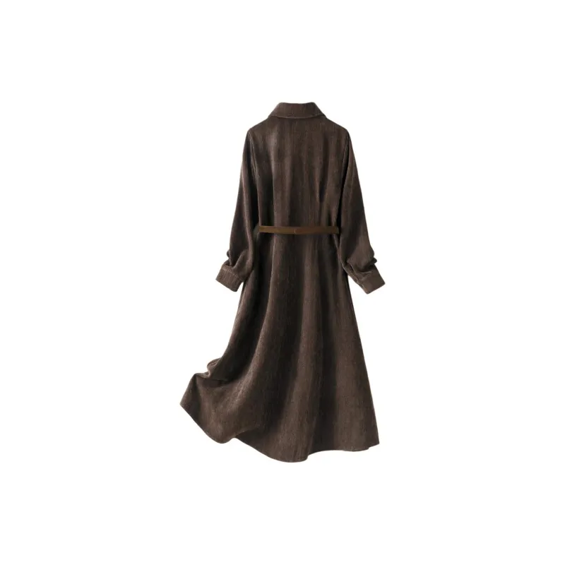 IHIMI 다크 커피 색상 여성 긴팔 원피스