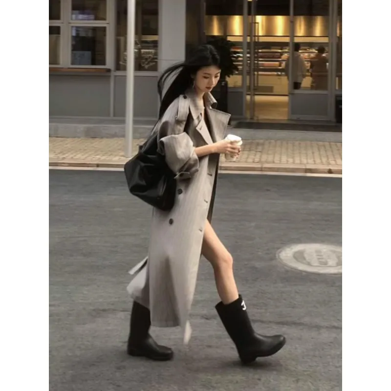 INCO VIBE 그레이 줄무늬 여성 코트 - POIZON