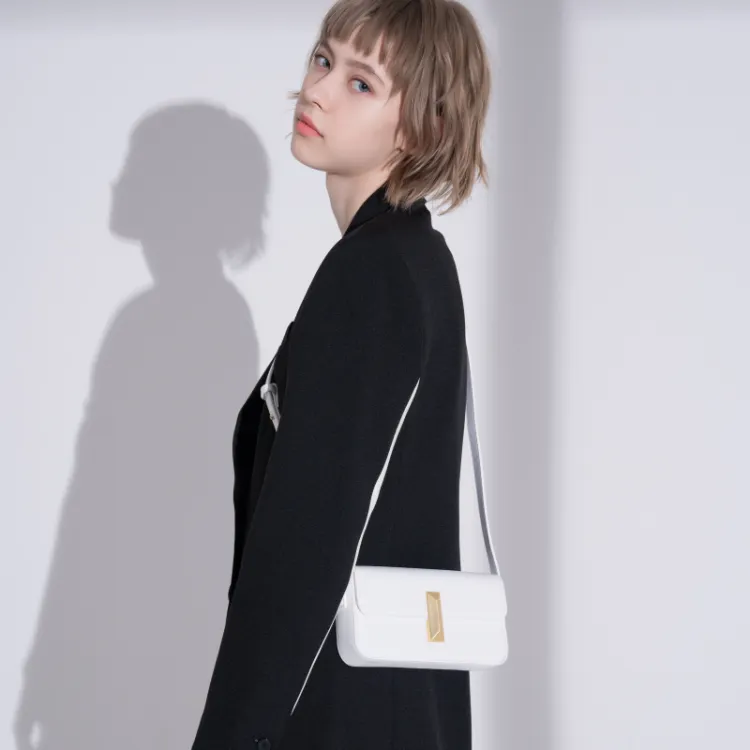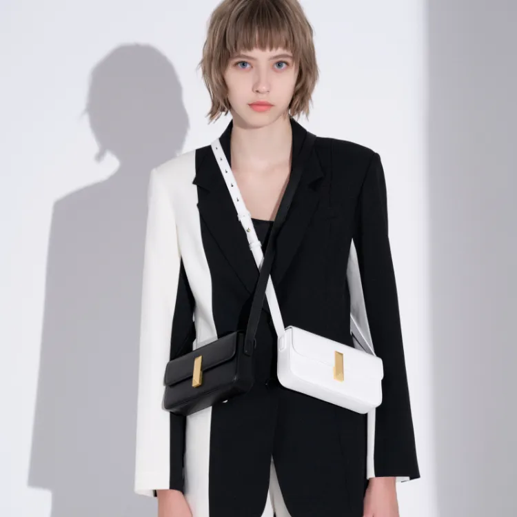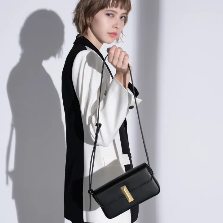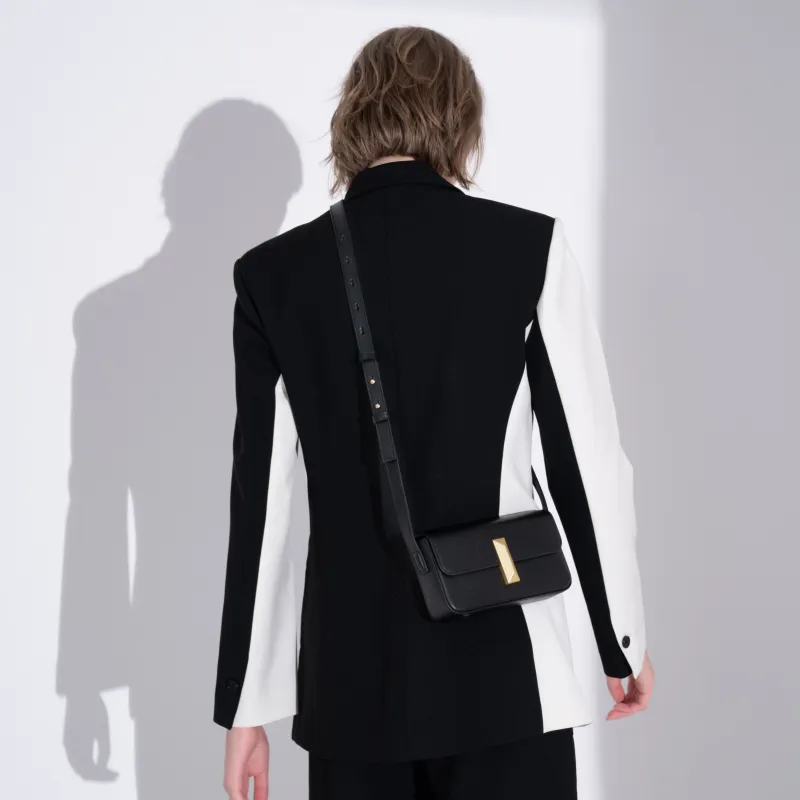 INJOYLIFE 소가죽 바게트 백, 두부 백, 원 숄더 크로스백 레귤러 여성 블랙 - POIZON