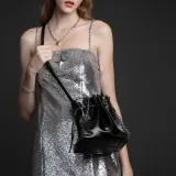 INJOYLIFE 소가죽 바이커 버킷 백, <브랜드_1>e 어깨 크로스백 S 여성 블랙 - POIZON