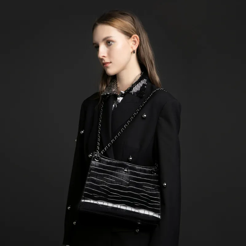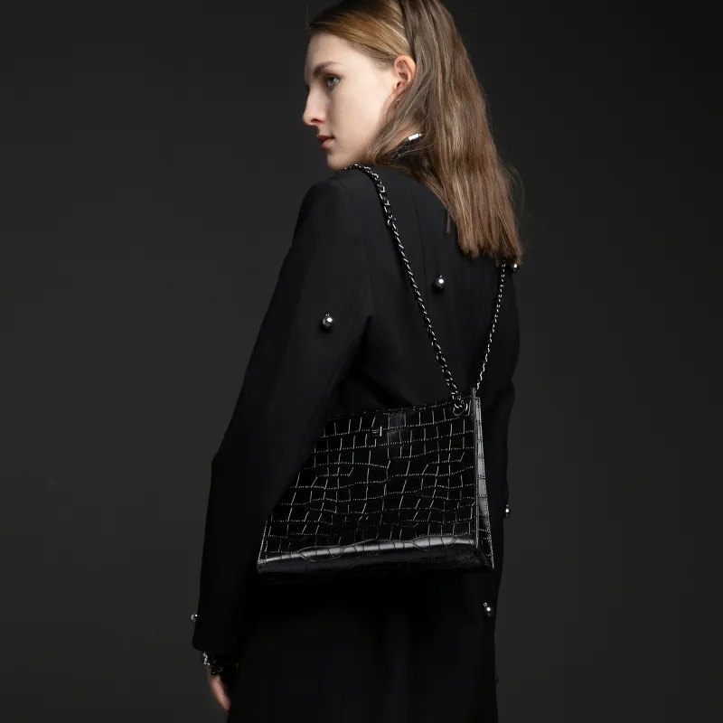 INJOYLIFE 소가죽 호보 백 숄더 백 M 여성 블랙 - POIZON