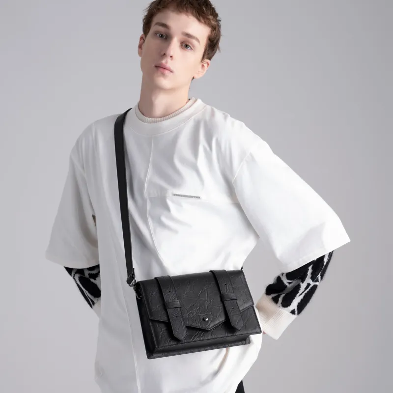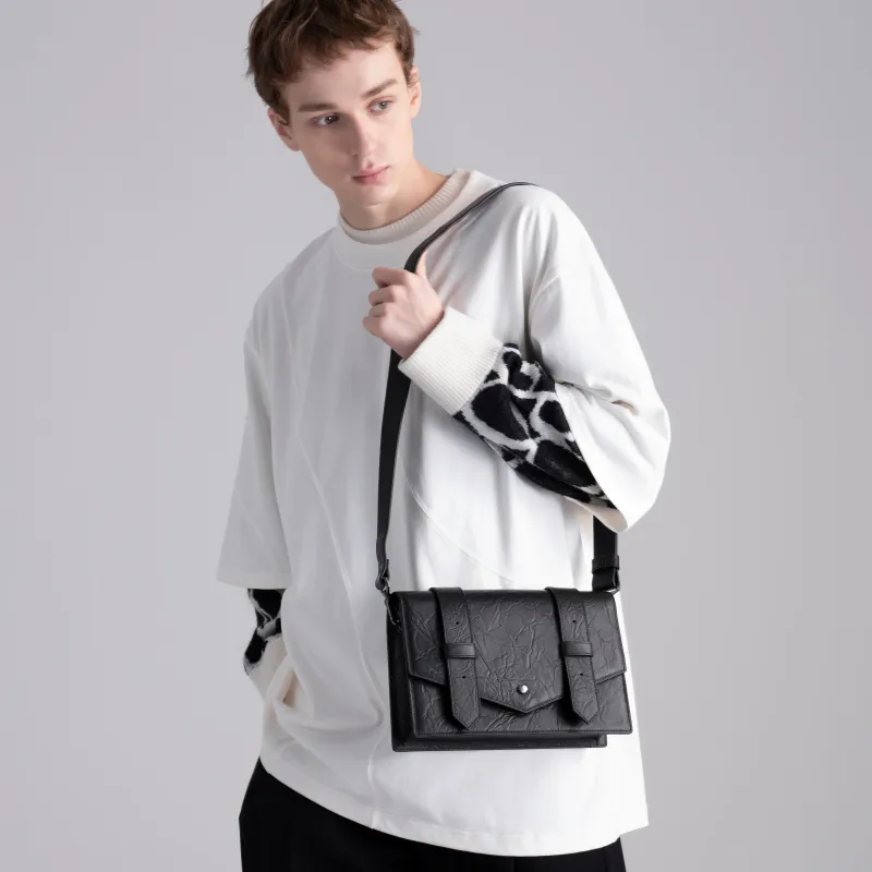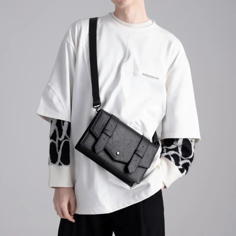 INJOYLIFE 소가죽 사첼 백 출근룩 가방 숄더 백 남성 블랙 - POIZON