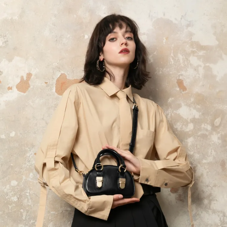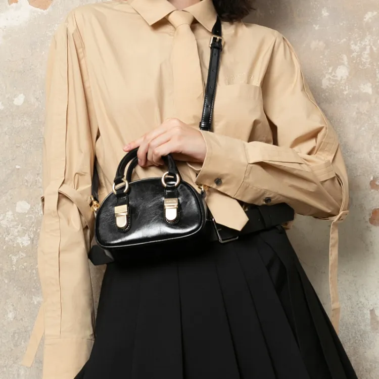 INJOYLIFE 소가죽 <브랜드_1> E 어깨 크로스백, 핸드백 미니 여성 블랙 - POIZON
