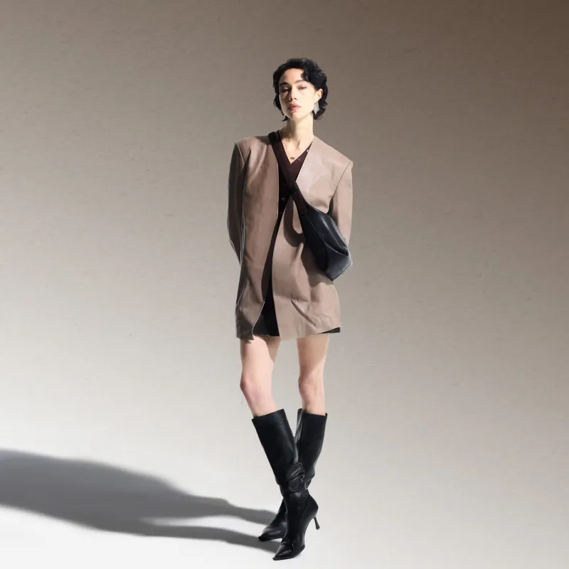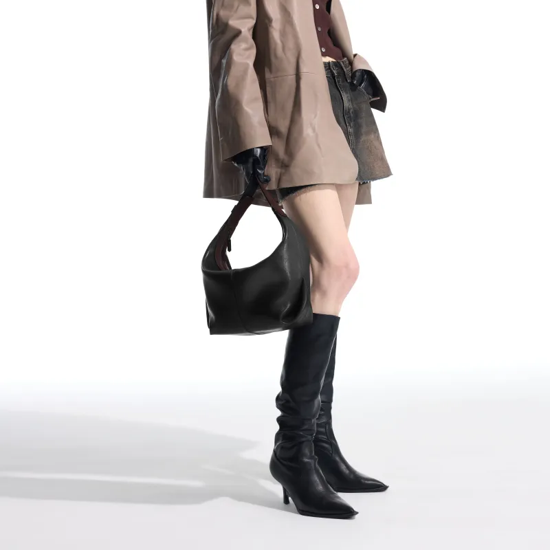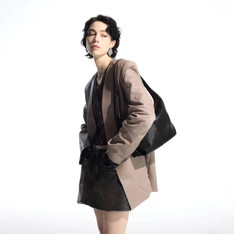 INJOYLIFE 소가죽 숄더백 레귤러 여성 태닝 가죽 블랙 - POIZON