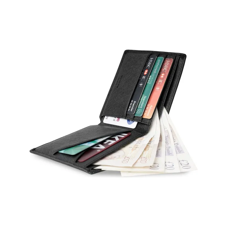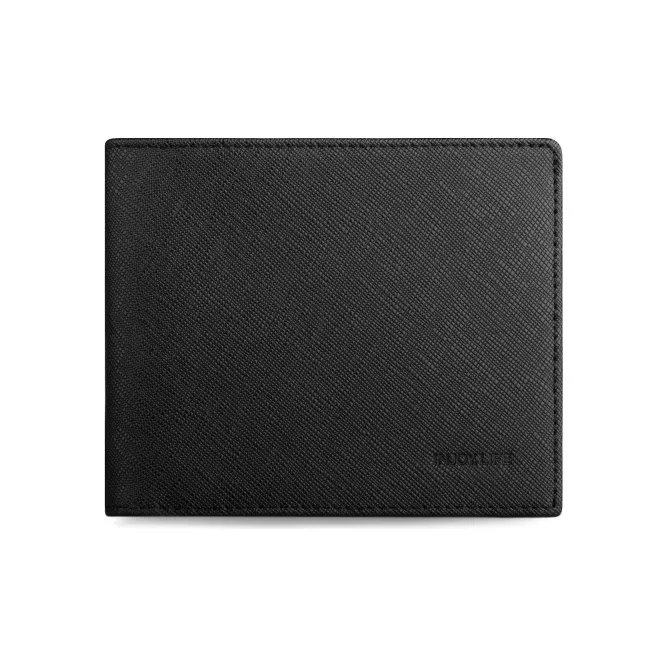 INJOYLIFE 크로스 그레인 천연 가죽 지갑 남성 블랙