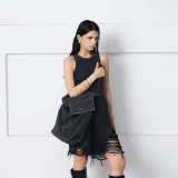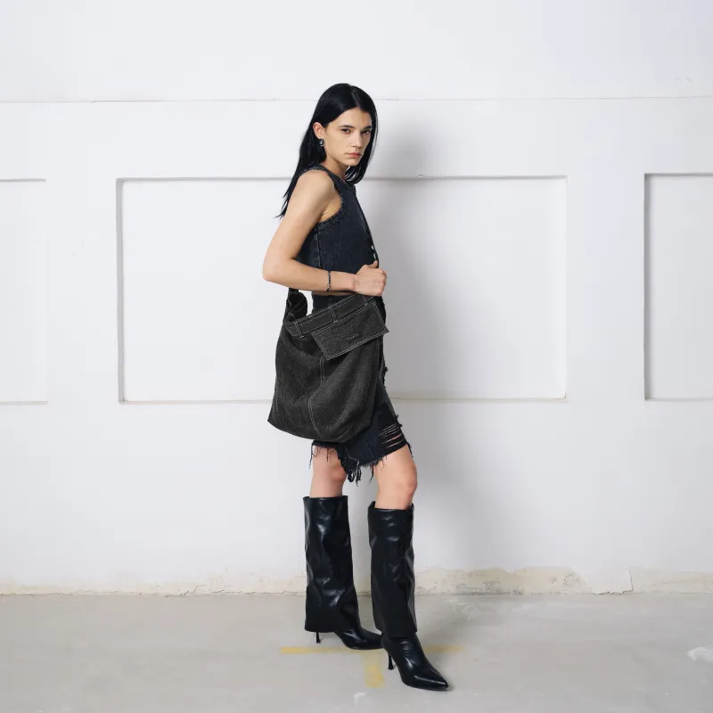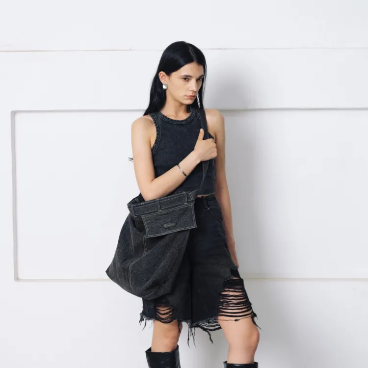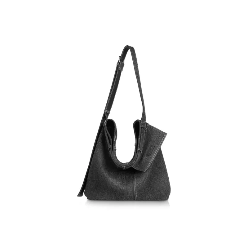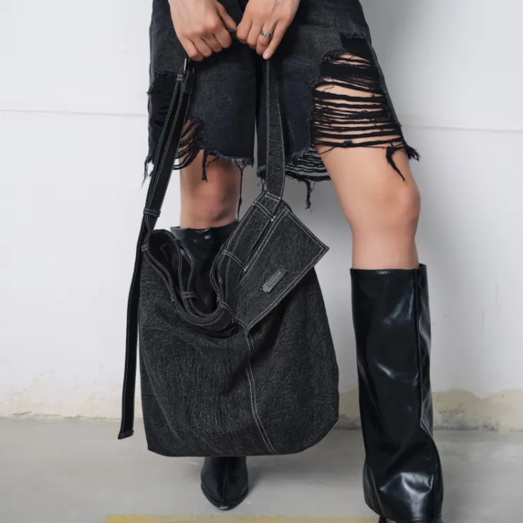 INJOYLIFE 데님 숄더 백, 크로스 백 L 남녀공용 데님 블랙 - POIZON