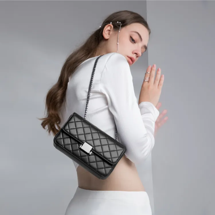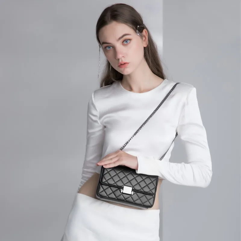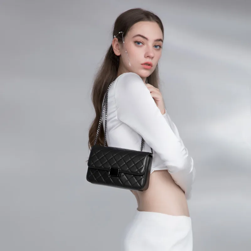 INJOYLIFE 양가죽 체인 백, 스몰 스퀘어 백, 원 숄더 크로스백 레귤러 여성 블랙 - POIZON