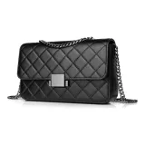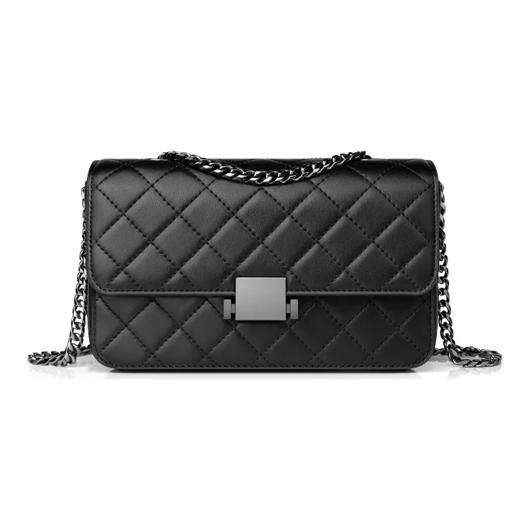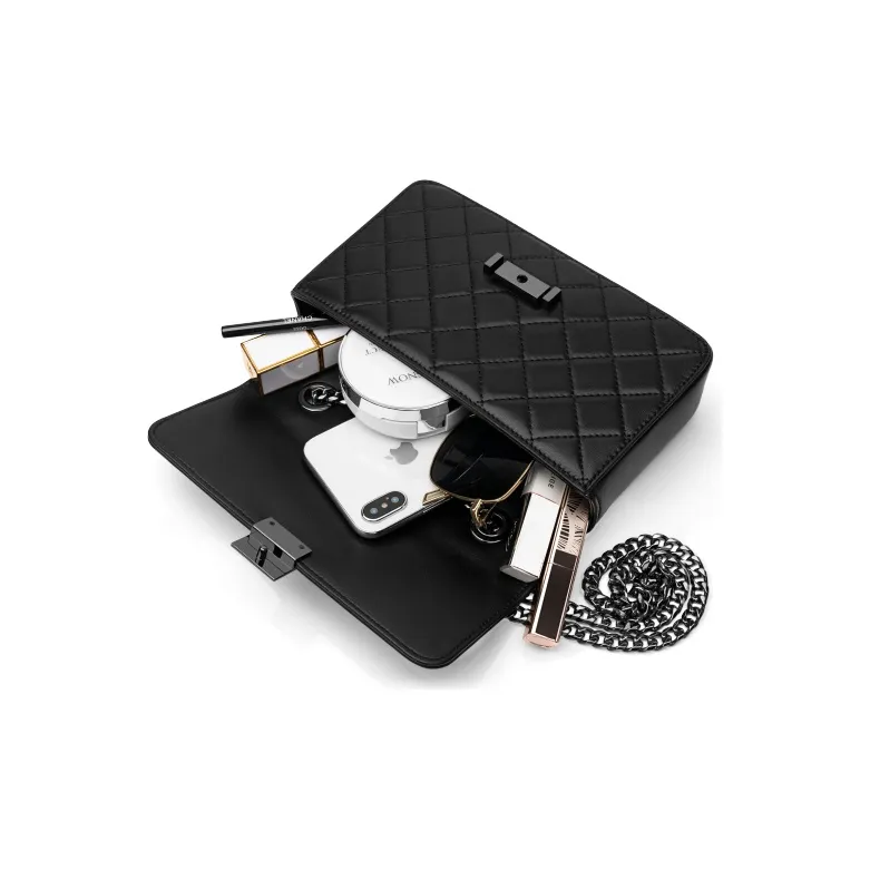 INJOYLIFE 양가죽 체인 백, 스몰 스퀘어 백, 원 숄더 크로스백 레귤러 여성 블랙