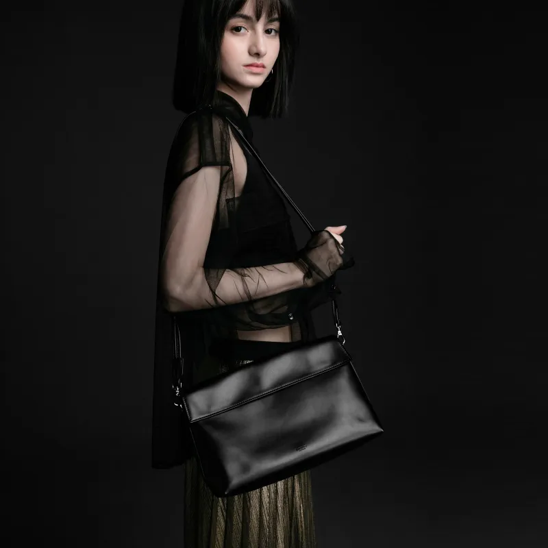 INJOYLIFE 소프트 가죽 크로스백, 숄더 백 M 여성 블랙 - POIZON