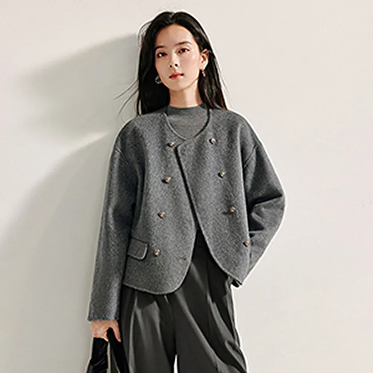 다크 그레이 원단: 64% 양모, 13% 폴리에스터, 11.4% 라이오셀, 7.2% 알파카 울, 4.1% 천연 실크 (연결 실 제외) 카멜 원단: 66.2% 양모, 19.9% 폴리에스터, 7.5% 라이오셀, 4.7% 천연 실크, 1.7% 알파카 울 (연결 실 제외)