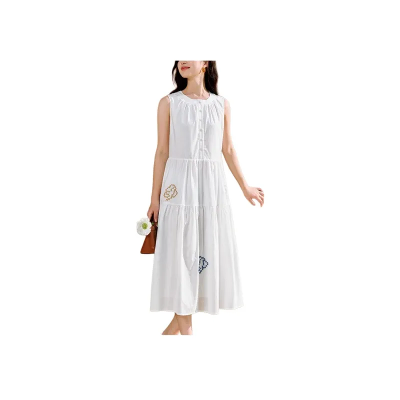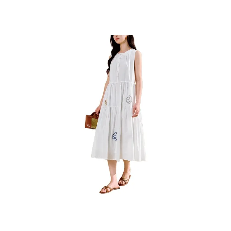 Inman 펄 화이트 여성 민소매 원피스 - POIZON