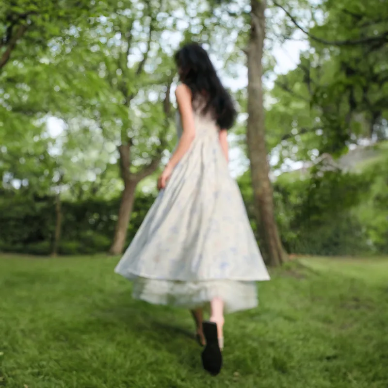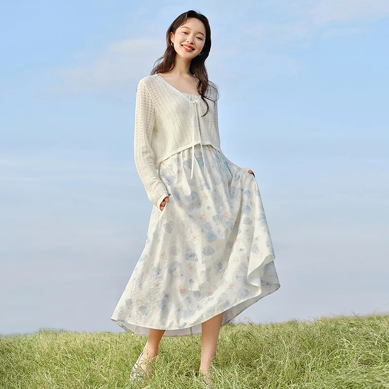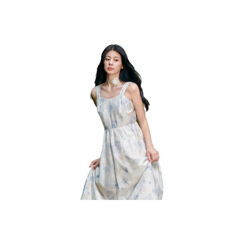 Inman 슬립 드레스 여성 선물 박스 세트 화이트+블루 플로럴 - POIZON