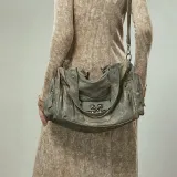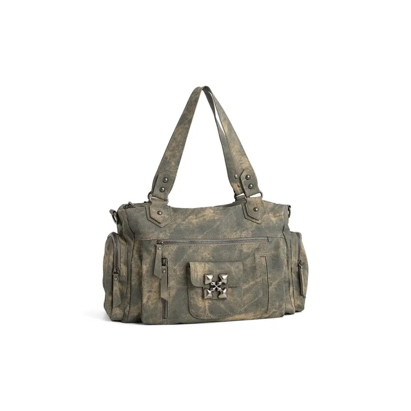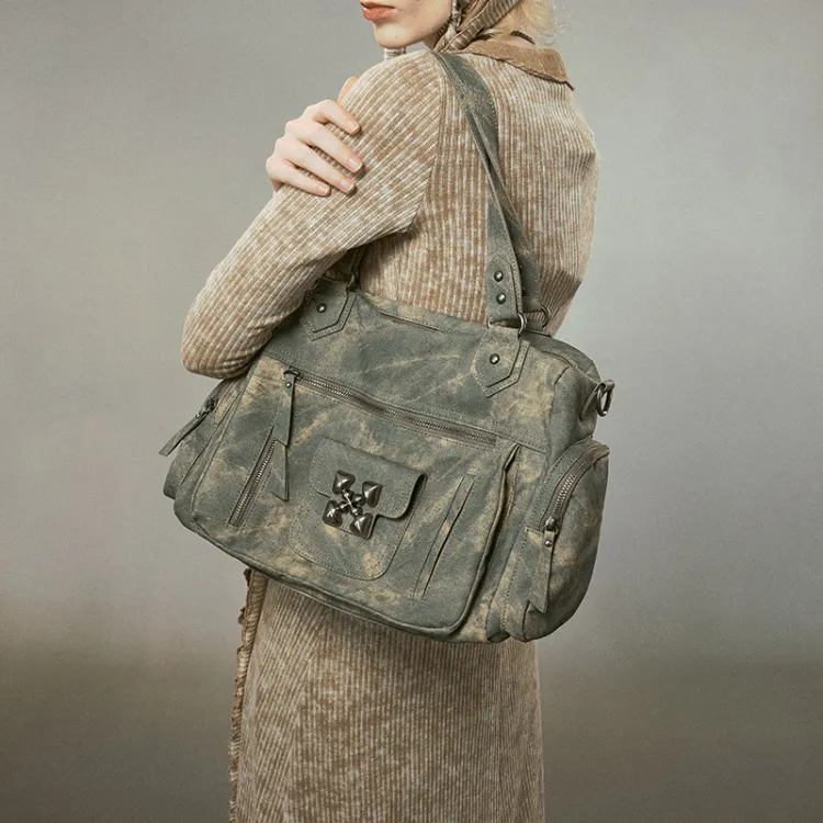 JACD PU 숄더백 레귤러 여성 해적 블랙/데님 그레이 골드 - POIZON
