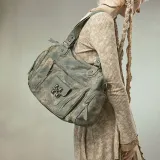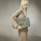JACD PU 숄더백 레귤러 여성 해적 블랙/데님 그레이 골드
