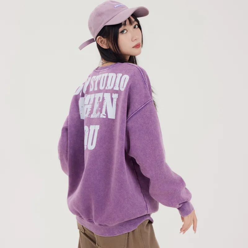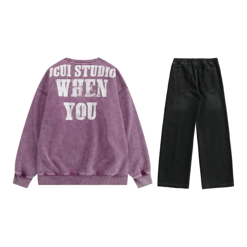 워싱 처리 퍼플 맨투맨 + 블랙 청바지