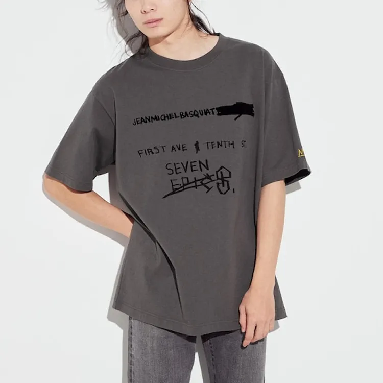 유니클로 Basquiat 콜라보레이션 그레이 남녀공용 티셔츠 - POIZON