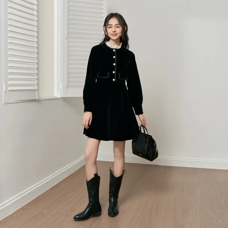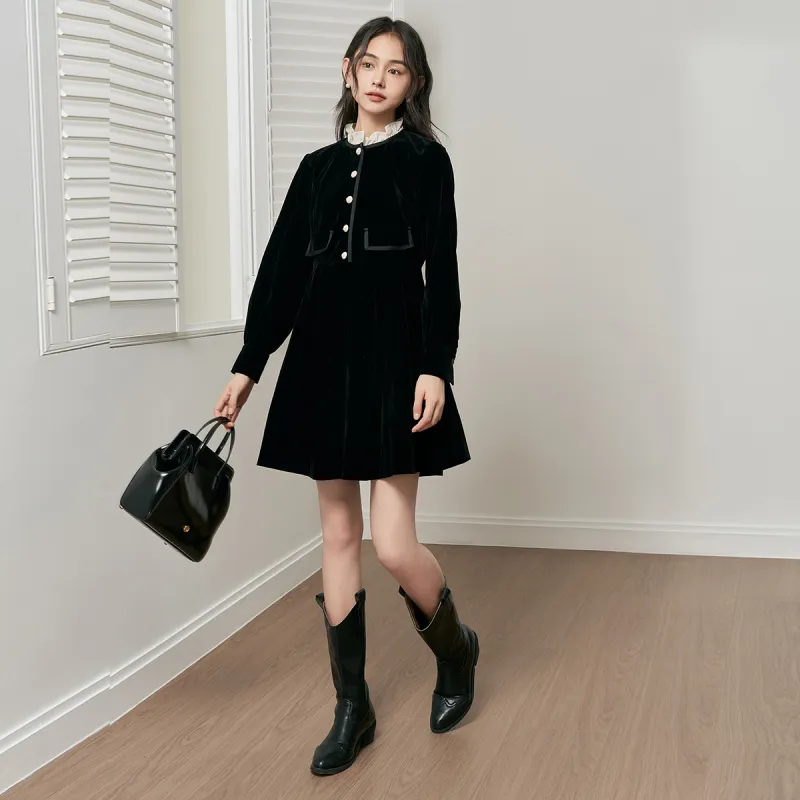 JESSYLINE 블랙 여성 긴팔 원피스 - POIZON