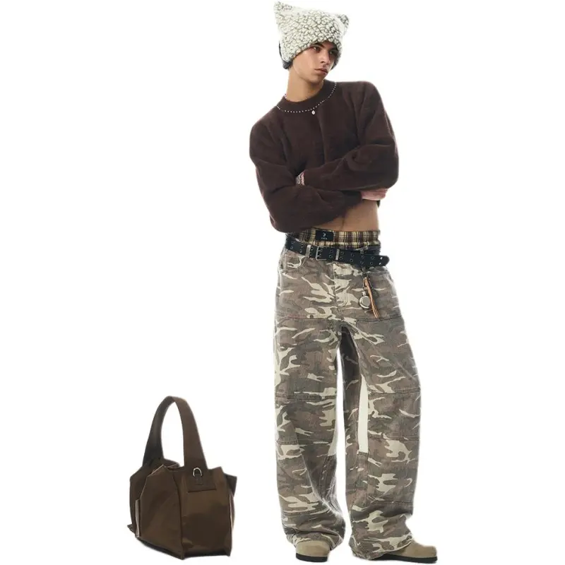 JHYQ 핑크 그레이 카모플라주 남녀공용 캐주얼 팬츠 - POIZON