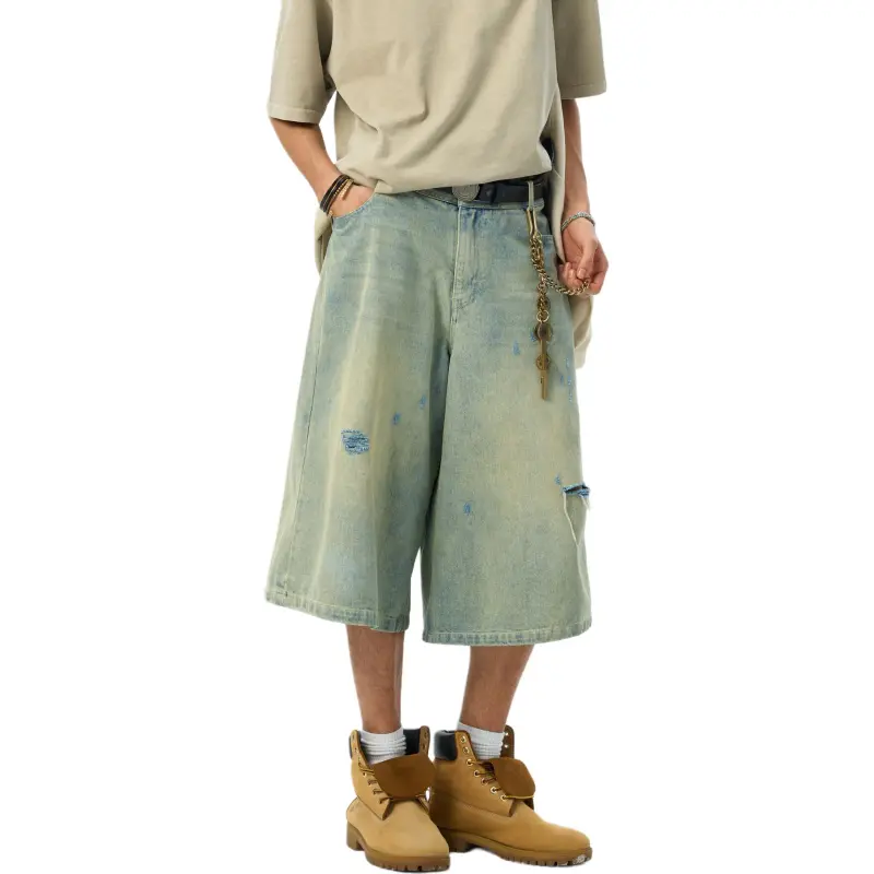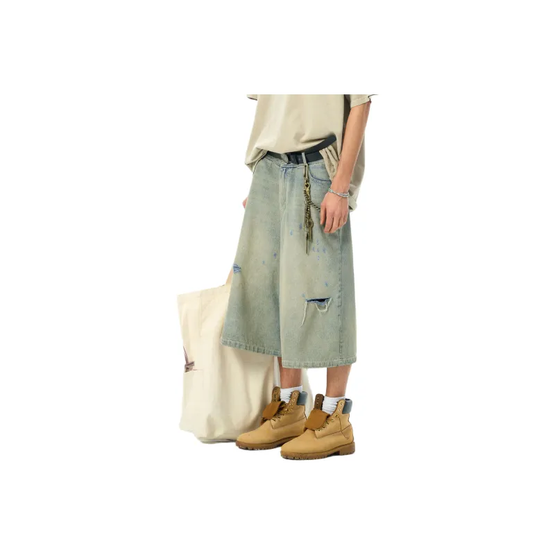 JHYQ 블루 남녀공용 데님 반바지 - POIZON