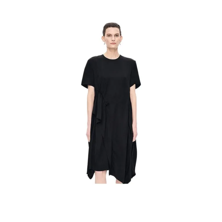 Jiangnan Commoner 제트 블랙 여성 반팔 원피스
