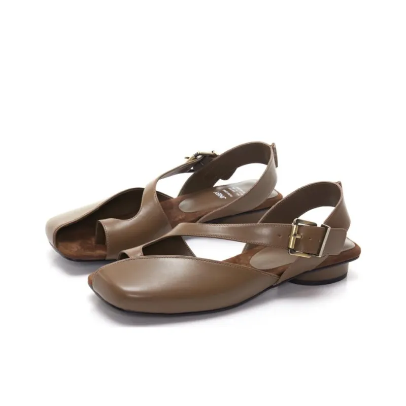Jiangnan Commoner 일자 스트랩 샌들 여성 카멜