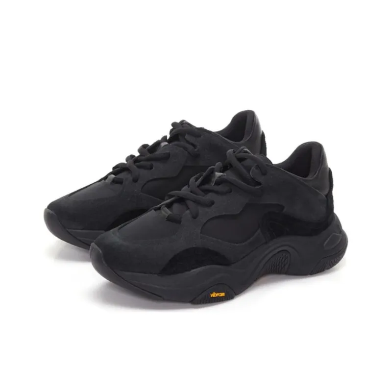 Jiangnan Commoner 내마모성 로우탑 청키 스니커즈 여성 제트 블랙