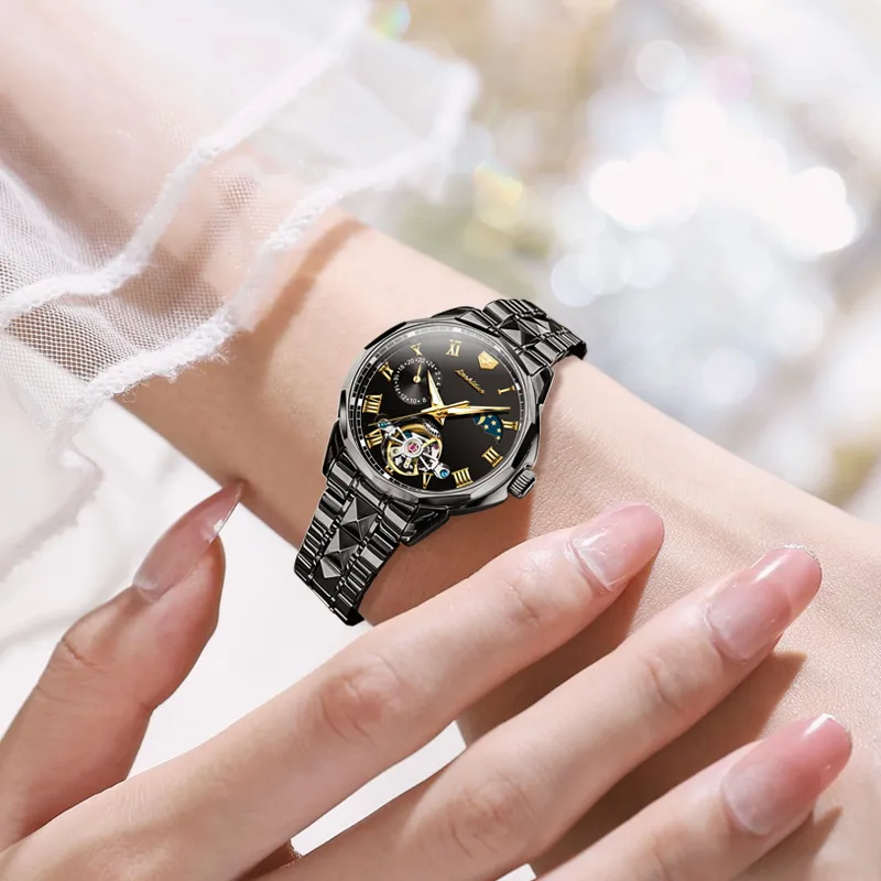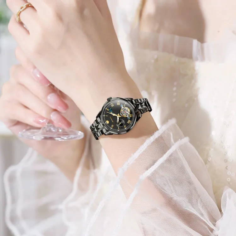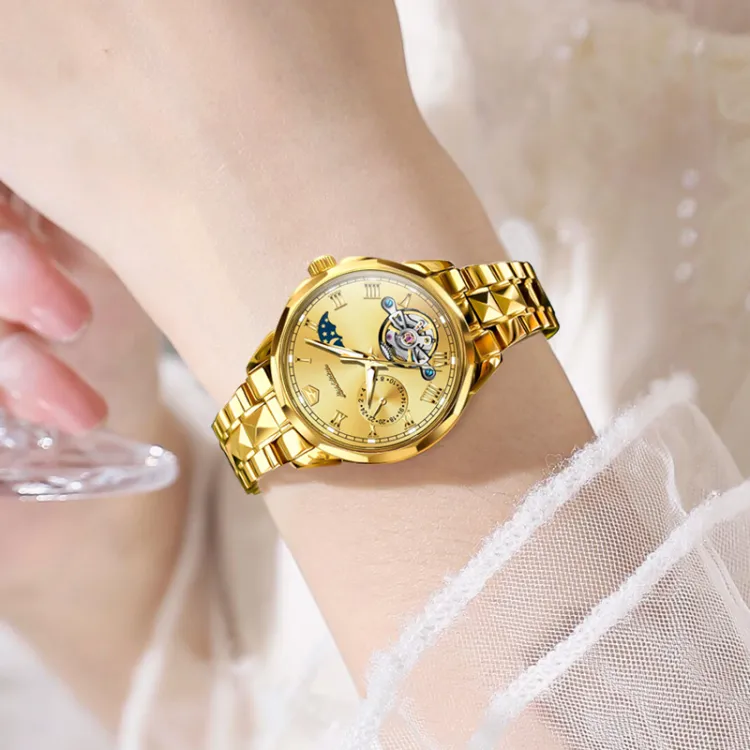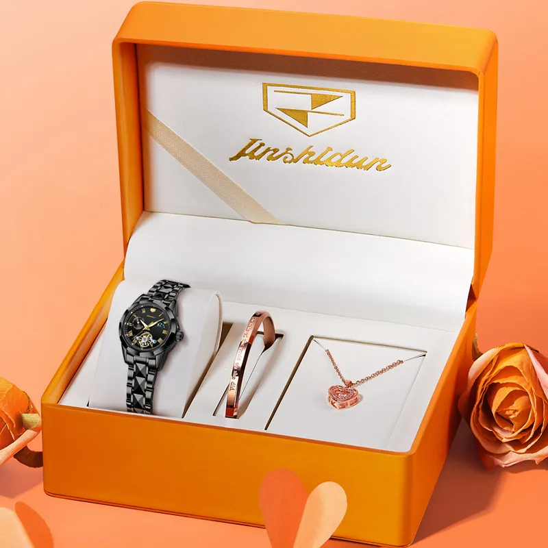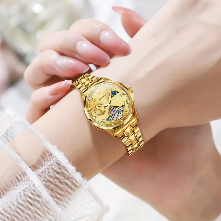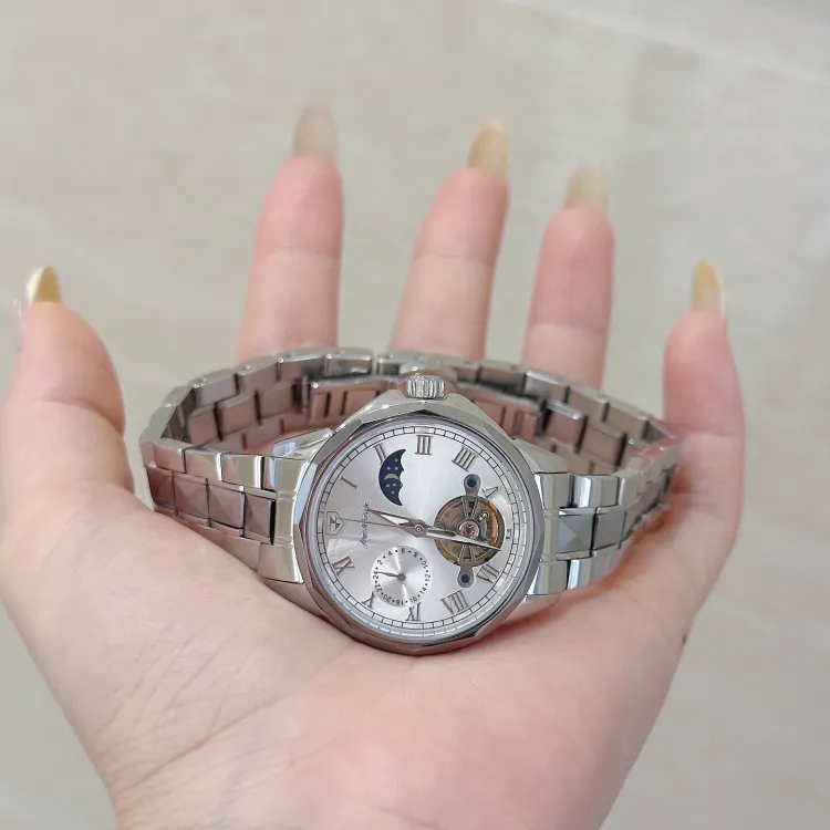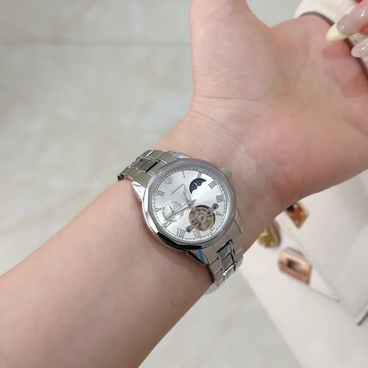 진 시 둔 스마트 시리즈 메커니컬 무브먼트 스테인리스 스틸 시계 밴드 중국 시계 여성 시계 화이트 다이얼