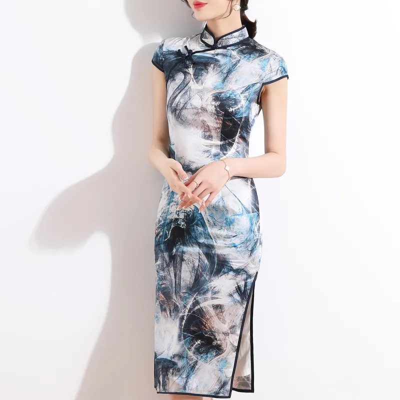 JINJU 블루 여성 반팔 원피스 - POIZON