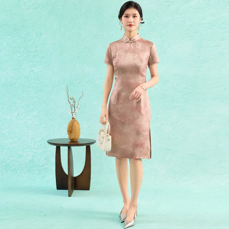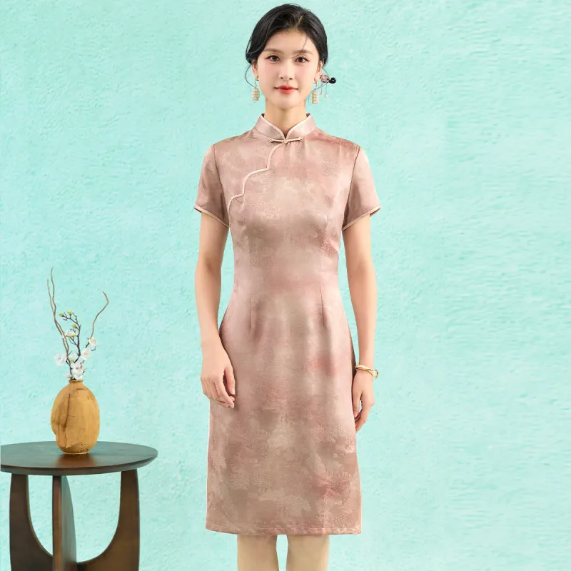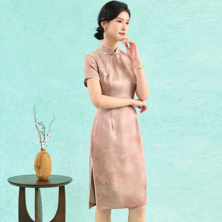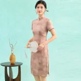 JINJU 핑크 플로럴 여성 반팔 원피스