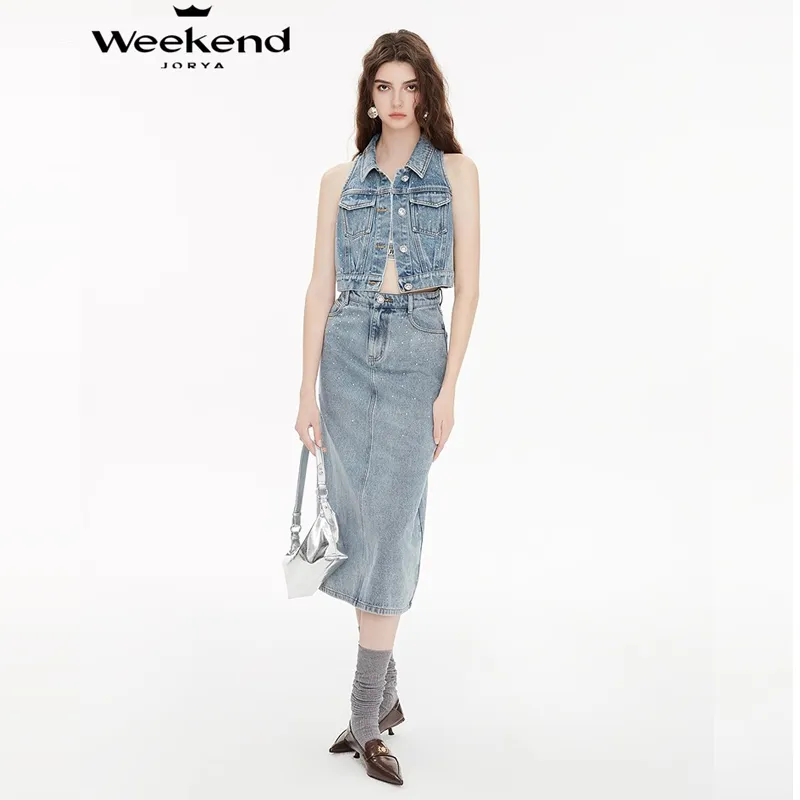 JORYAweekend 블루 여성 데님 롱 스커트 - POIZON