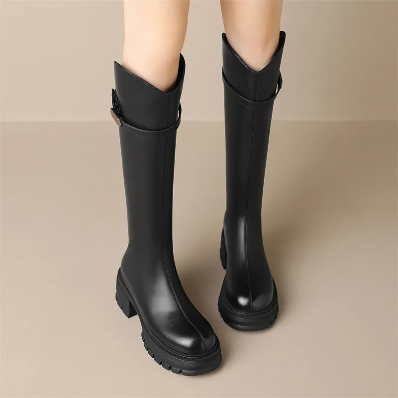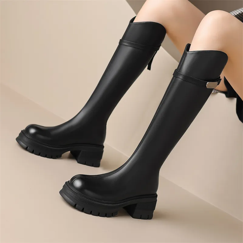 JOSINY 프렌치 패션 의류 나이트 기사 부츠 통굽 키높이 슬림핏 효과, 니 하이 부츠 굽 높이 7CM 여성 - POIZON