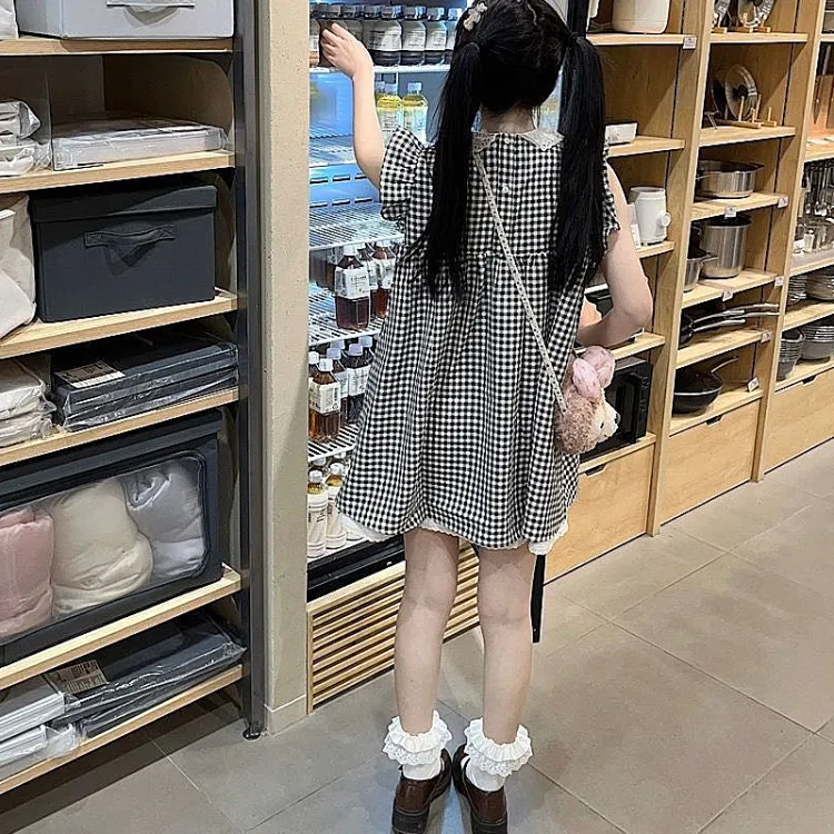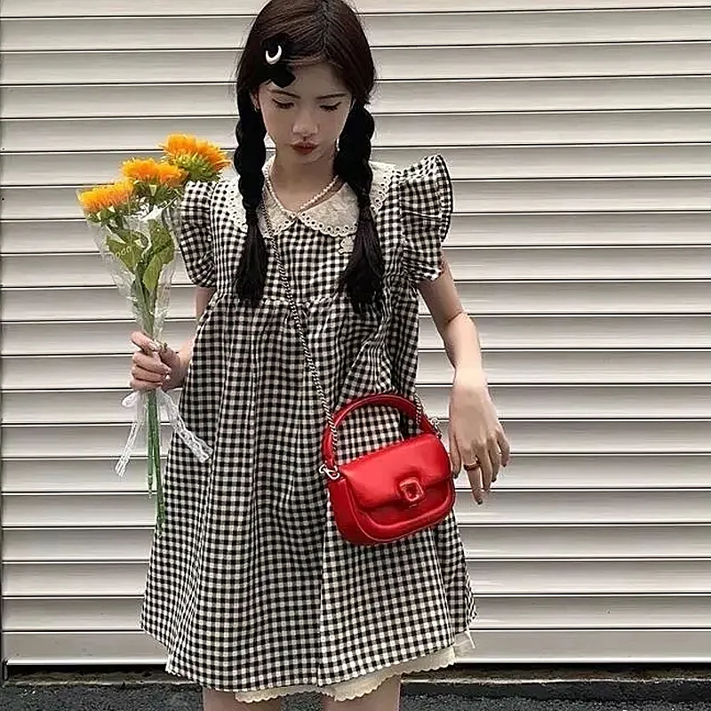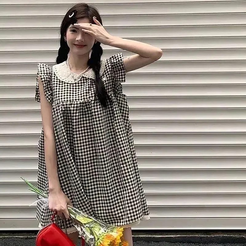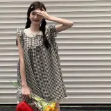 JOSR 체크무늬 여성 반팔 원피스 - POIZON
