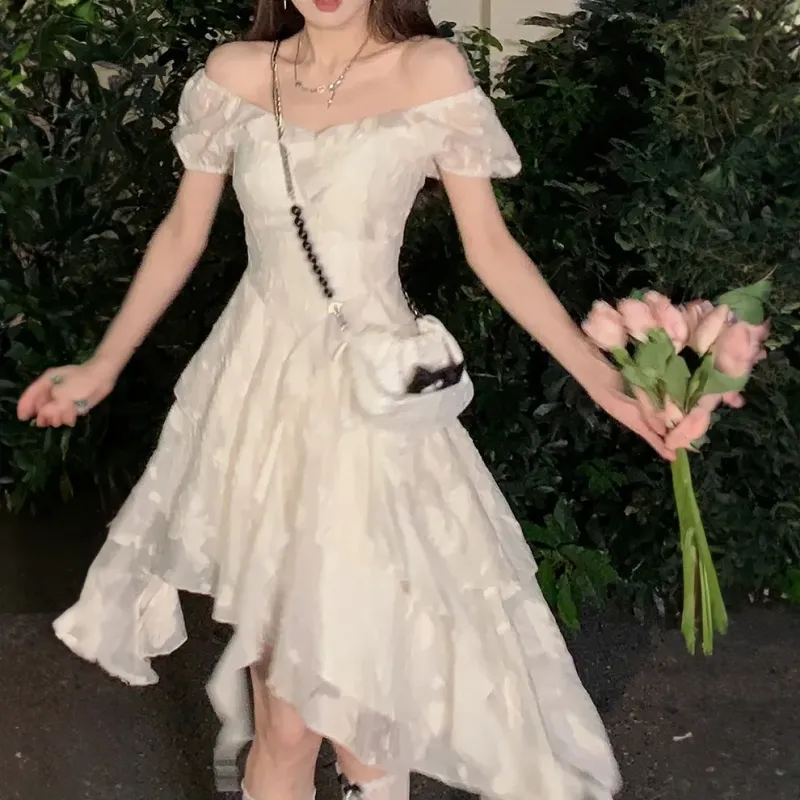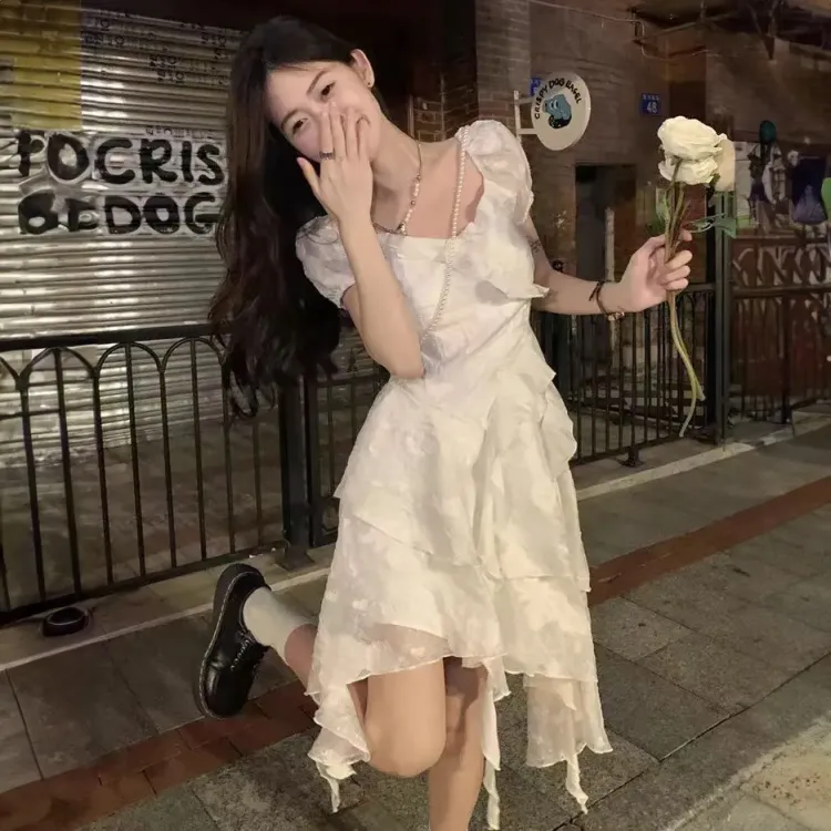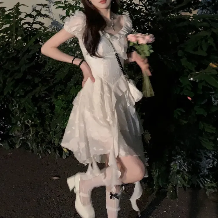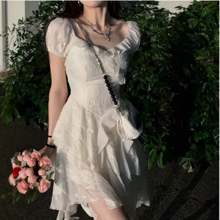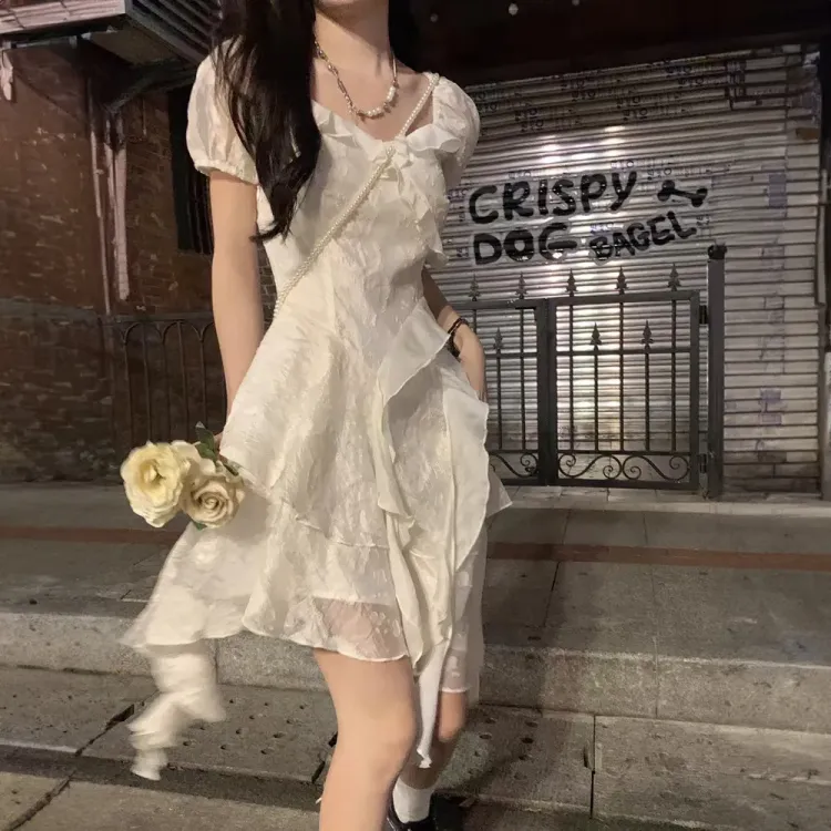 JOSR 화이트 여성 반팔 원피스 - POIZON