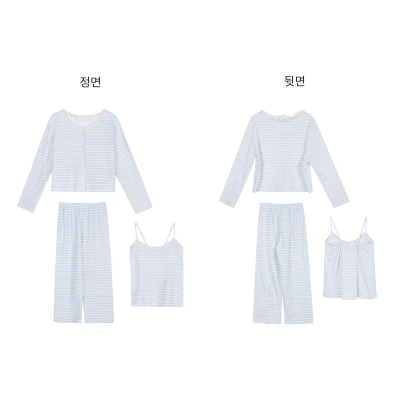 Joycefuuu Bra 블루와 화이트 레터링 여성 파자마 세트