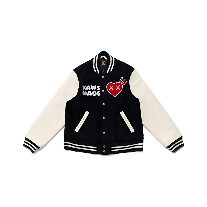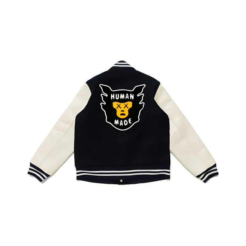 휴먼 메이드 x 카오스 HUMAN MADE X KAWS 협업 시리즈 베이스볼 재킷 남성 마린 블루 - POIZON