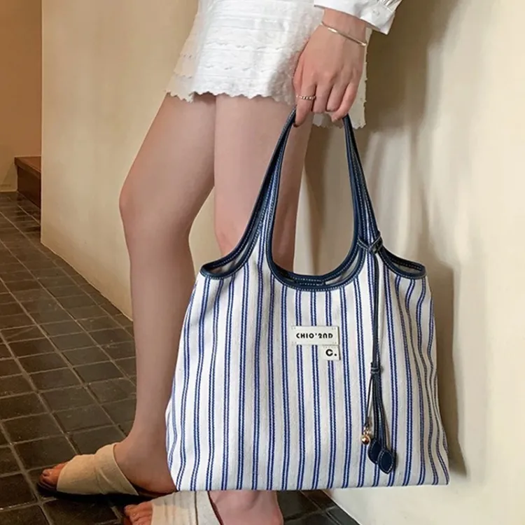 KONADCT 캔버스 숄더백 남녀공용 블루 스트라이프 패턴 - POIZON
