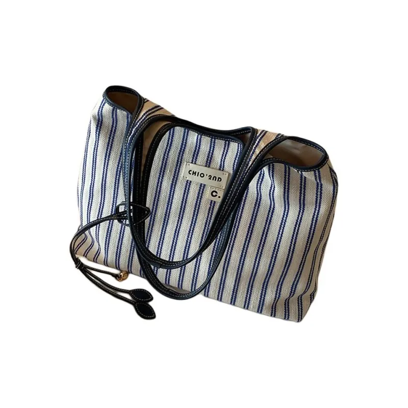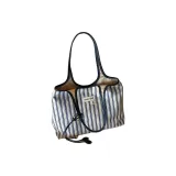 KONADCT 캔버스 숄더백 남녀공용 블루 스트라이프 패턴