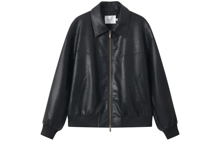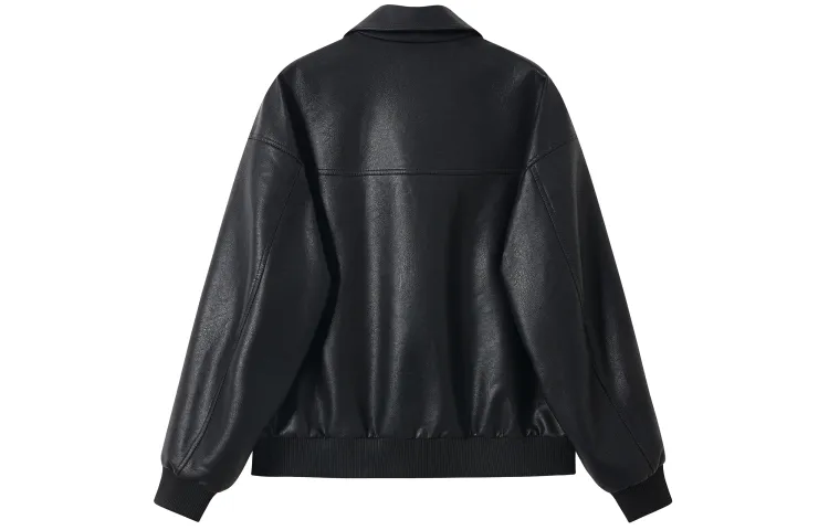 KREATE BOXY 컷 시리즈 가죽 재킷 코트 남녀공용 블랙 - POIZON