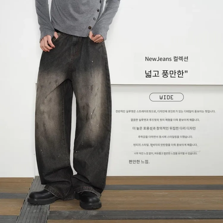 KREATE 워시드 블랙 남녀공용 청바지 - POIZON