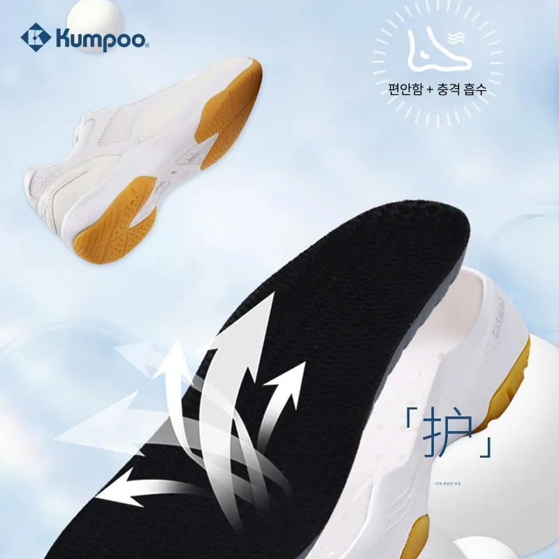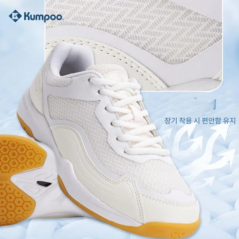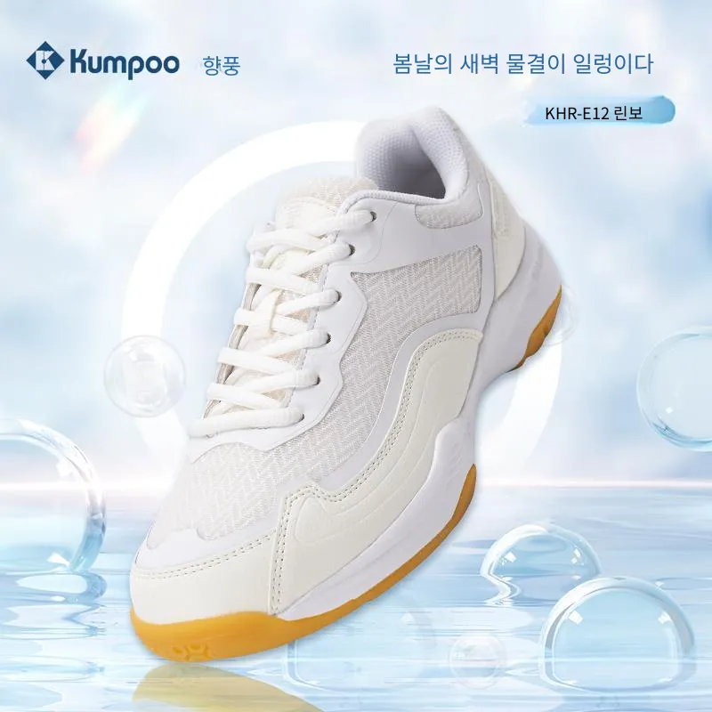 KUMPOO KHR E12 미끄럼 방지+내마모성 로우탑 배드민턴화 남녀공용 크림 화이트