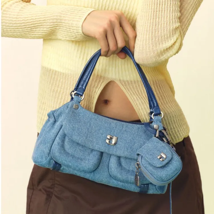 KUNOGIGI 원단 크로스바디백 숄더백 핸드백 S 남녀공용 데님 블루 - POIZON