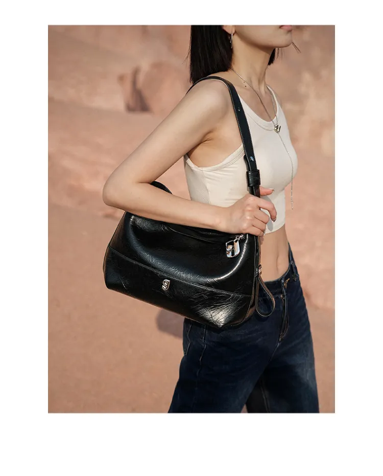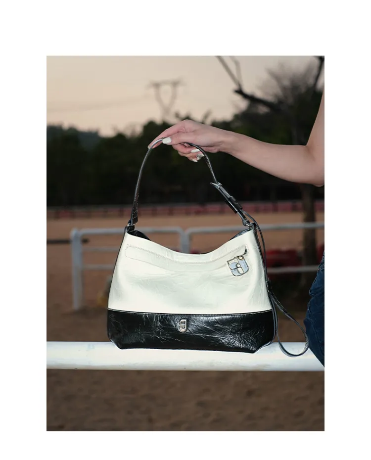 KUNOGIGI 가죽, 소가죽 대용량 숄더 백 M 여성 오레오/블랙 - POIZON