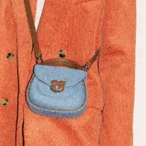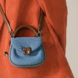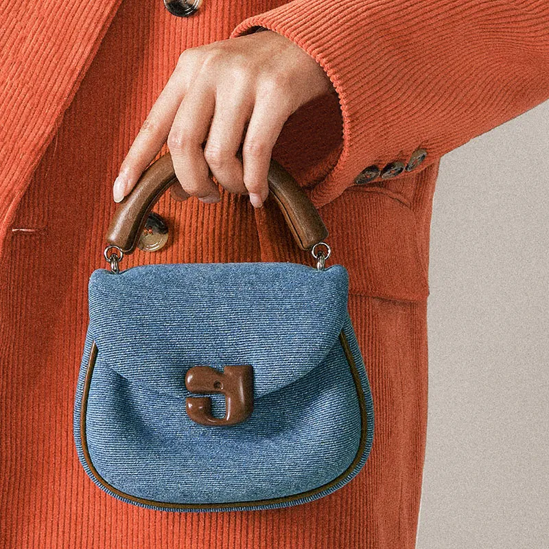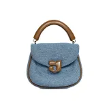 KUNOGIGI 텍스타일, 가죽 트림 Gigi 가방, 새들 가방, 원 숄더 크로스백, 핸드백 S 여성 빈티지 데님 블루 - POIZON